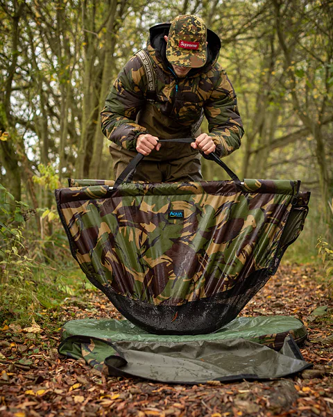 Vážící sak Aqua Camo Buoyant Weigh Sling je vyroben z pevného a rybám šetrného materiálu Aquatexx®, který kombinuje vysokou odolnost s rychlým schnutím. Maskovací DPM design skvěle ladí s výbavou moderních kaprařů a zároveň zajišťuje, že manipulace s rybou je maximálně bezpečná a komfortní.