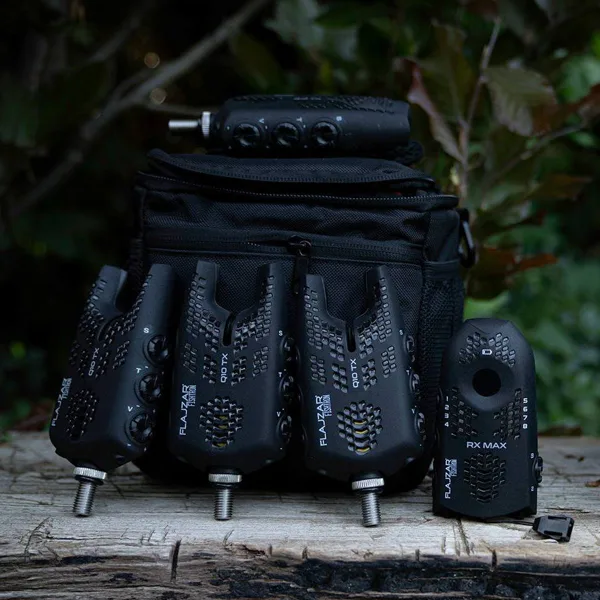 Flajzar Sada Signalizátorů Q10TX 2+1 je kompletní set dvou signalizátorů záběru Fishtron Q10 TX, přijímače RX MAX a stylové brašny, která slouží k bezpečnému uložení a přehlednému transportu celé sestavy. Multibarevný signalizátor Fishtron Q10 TX je český výrobek nabitý moderními funkcemi, mezi které patří CONNECT pro kontrolu dosahu s přijímačem RX MAX, alarm proti krádeži prutů a funkce automatického zvýšení citlivosti. Výrazným vylepšením je napájení pomocí dvou AAA baterií, které zajišťuje snadnější a efektivnější výměnu, a také další konektor pro swinger, umožňující připojení svítícího swingeru i svítících uší.
