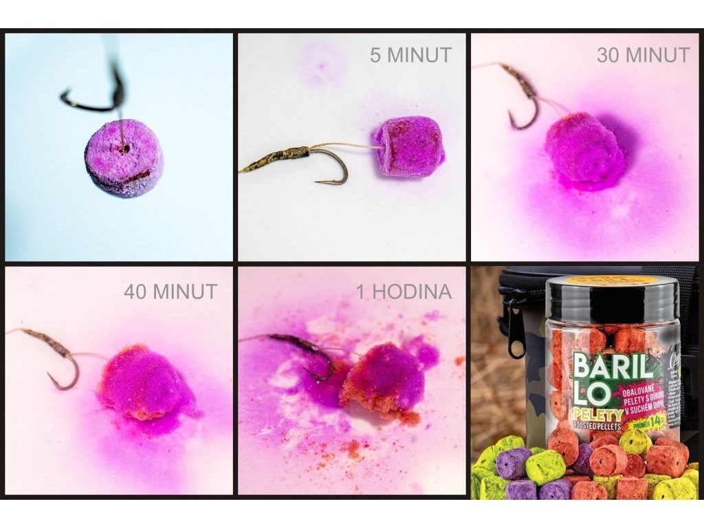 Do 5-ti minut po vhození do vody se kolem pelety vytvoří hustý sliz, který do vodního sloupce uvolňuje atraktory.