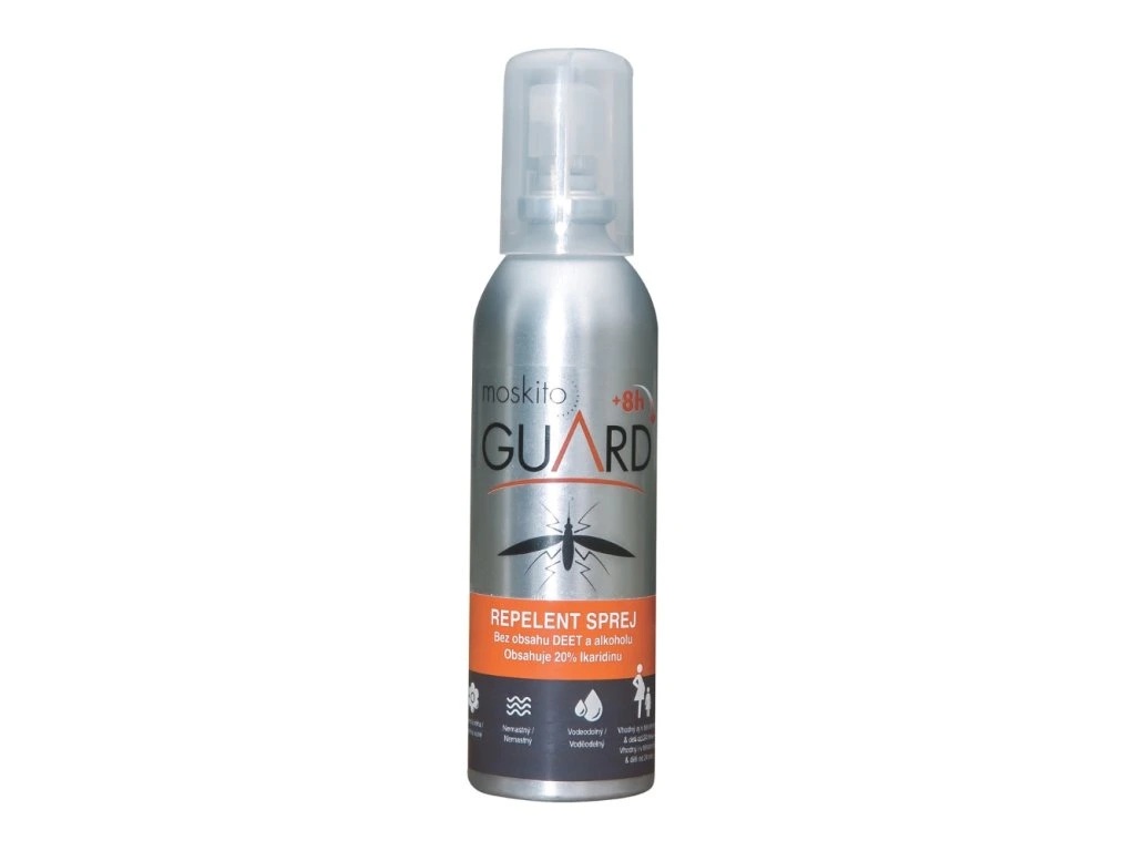 Repelentní přípravek Moskito Guard, který odpuzuje bodavě-savý hmyz. Jedná se o nemastný, voděodolný a hydratační repelent bez obsahu DEET, který je vhodný pro děti od 2 let a těhotné ženy.