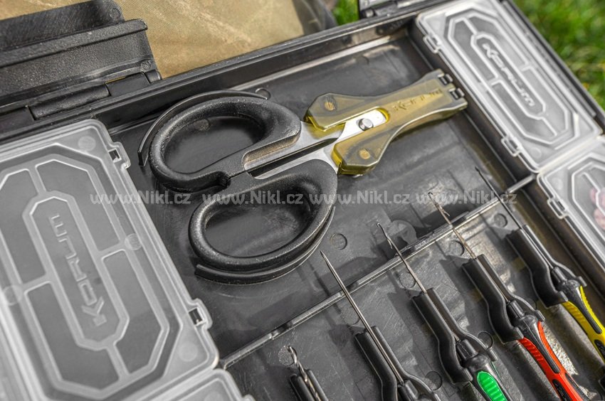Součástí balení jsou také nástrahové nástroje a nůžky, které se pevně uchytí do víka. Odolné provedení s těsněním zajistí bezpečí vaší výbavy i v nepříznivých podmínkách.