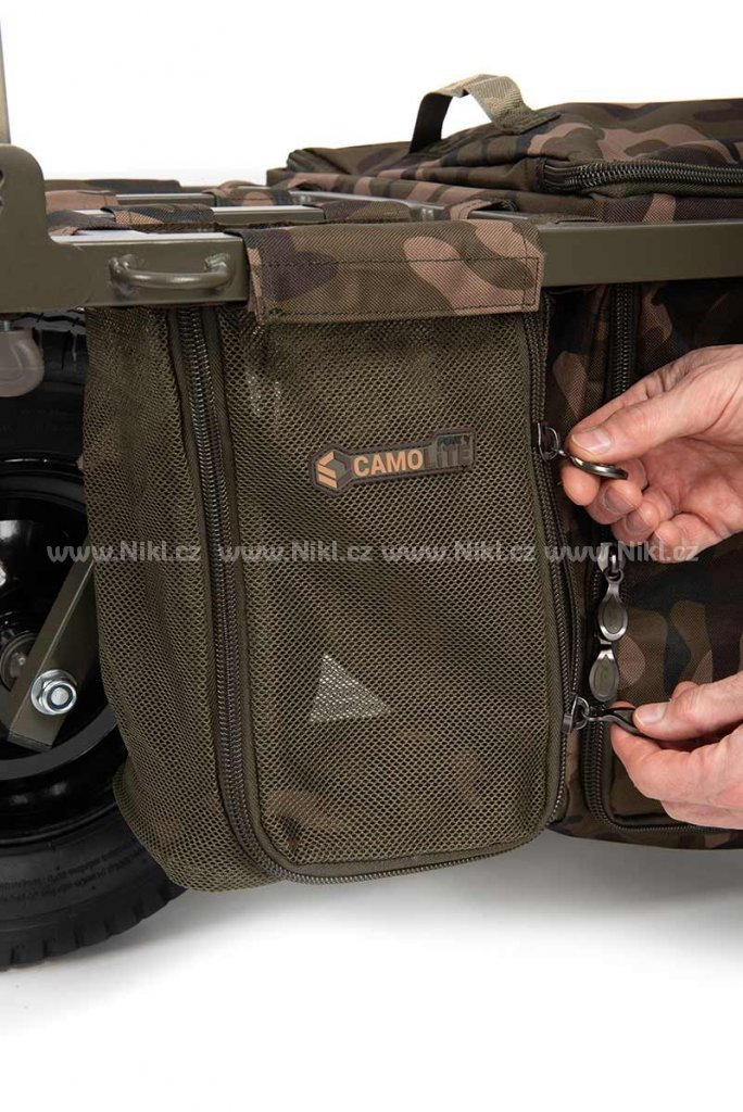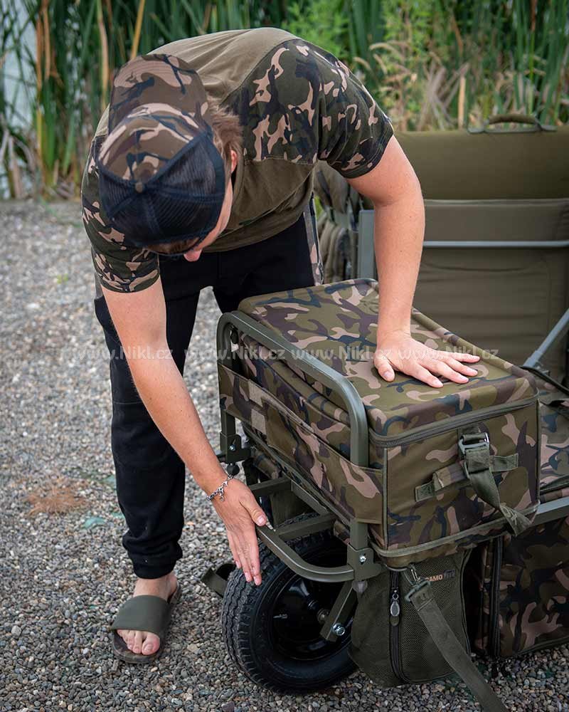 Díky promyšlené konstrukci je ideální jak pro krátké vycházky k vodě, kdy můžete rybařit přímo z vozíku, tak i pro delší výpravy, na které si vezete lehátko a více vybavení. Vozík disponuje výsuvným předním rámem pro umístění tašky, centrální podvozkovou brašnou a postranními kapsami, takže vždy zůstává dokonale vyvážený a nabízí dostatek prostoru pro vše potřebné.