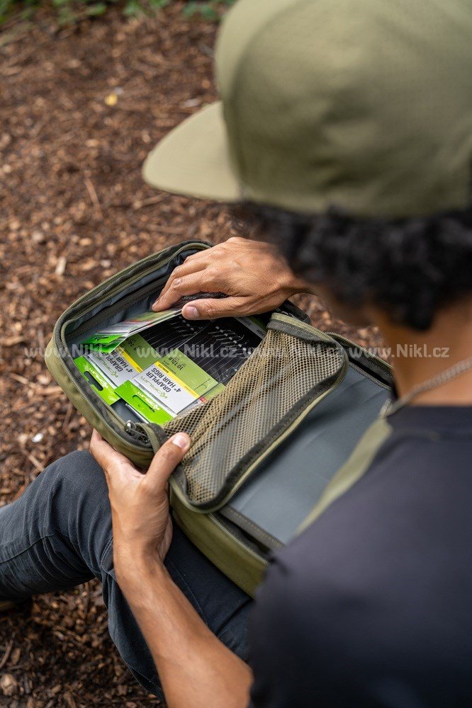 Díky vnitřní přepážce s kapsami lze bezpečně a přehledně uložit háčky, návazcové doplňky i další příslušenství.