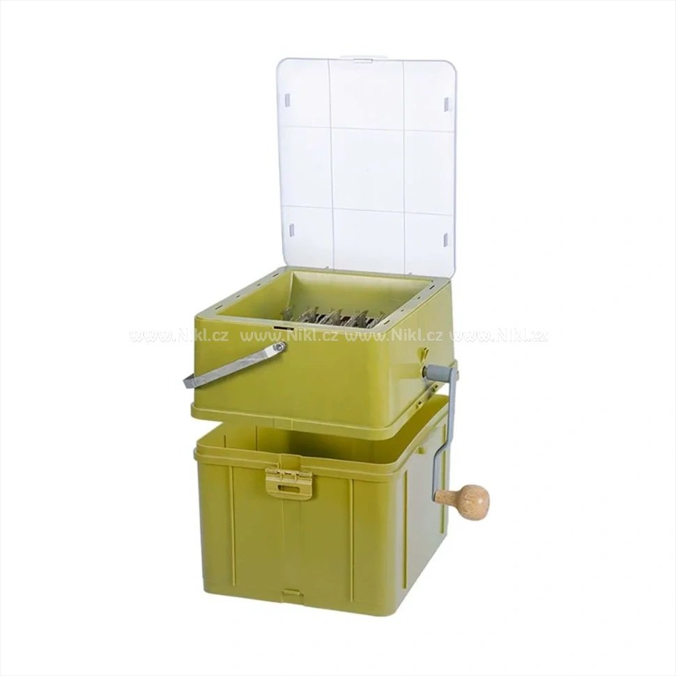 Díky robustní konstrukci z odolného ABS plastu a nerezovým čepelím zvládne během jedné minuty rozdrtit až kilogram boilies, což ocení především kapraři připravující směsi pro masivní krmné kampaně. Mlýnek je dodáván s 15litrovým vědrem a průhledným víkem pro snadnou kontrolu obsahu.
