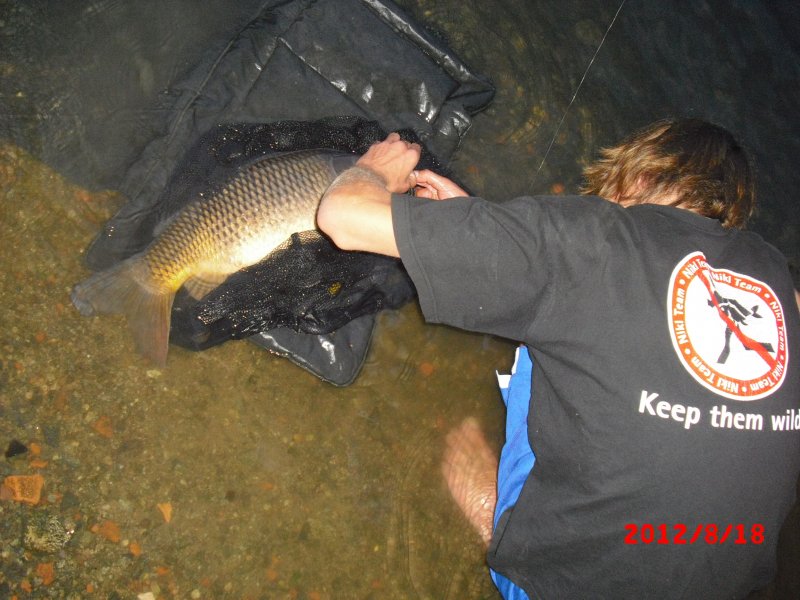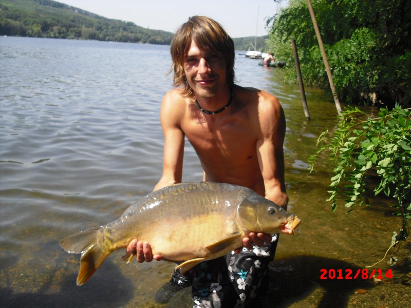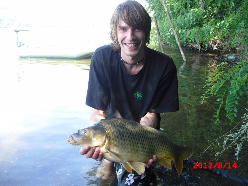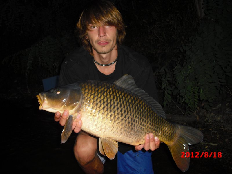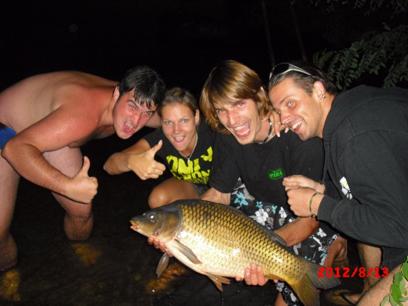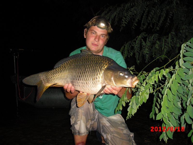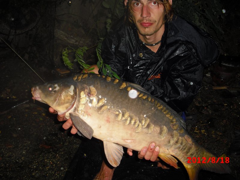 V obrovských vedrech (kolem 35st ve stinu )se vetší ryby ukazovaly jen u hladiny.Večer se ale vše změnilo,po krátké bouřce se ryby stáhly ke dnu a první větší ryba byla v podběráku,byl to krásny 11kg šupík kterému zachutnala dipovaná C4ka.