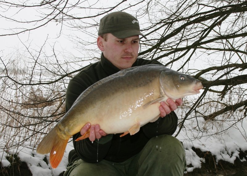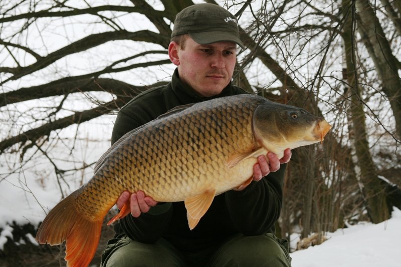 Kapři byli evidentně při chuti, záběry přicházely pravidelně a já se konečně taky dočkal po těch letech fotky na sněhu s kaprem! :) Večer na moje lovné místo najeli bobři, kteří krmící se kapry evidentně vyplašili, záběry ustaly a já jsem mohl spokojeně vyklidit loviště. Pokud však sníh ještě pár dní vydrží, určitě se k vodě pro nějakou zimní fotku vrátím :)