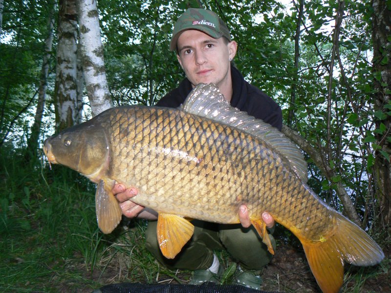 Od nějakej 18h do noci jsem byl bez záběru pruty jsem stáhl a šel spát. Ale druhý den ráno jsem znovu nahodil a kolem deváte se kapři začali ukazovat kolem krmného místa a uběhlo pár minut a přišel záběr ,po krátkém boji se na břeh podíval 86cm dlouhej šupi, krásná zdravá ryba.