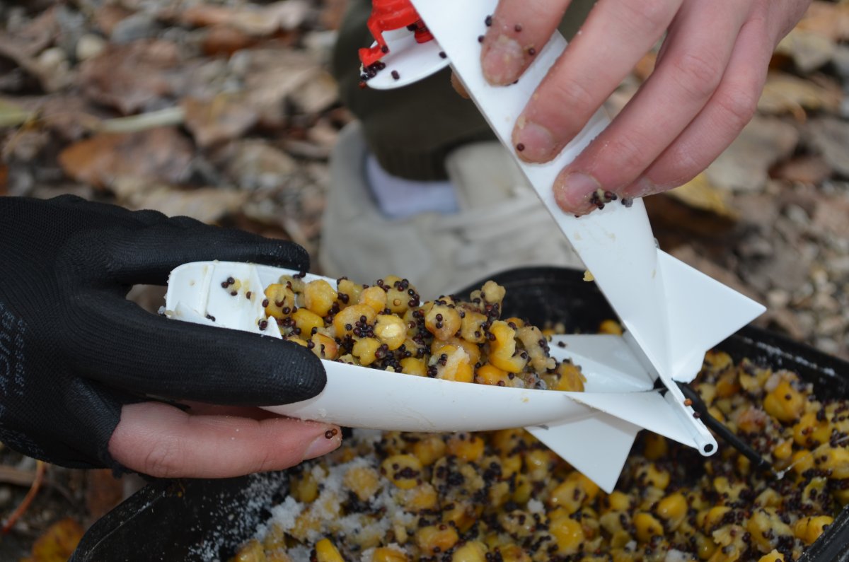 Každý kdo chytá na řece Moravě ví, jak hodně je to obtížná voda se spoustou zatopených stromů a různých překážek. Našel jsem jedno nenápadné místo, kde byl spadlý velký strom a voda zde stála. Usadil jsem se trochu opodál a nahazoval napříč řekou. Přichystal jsem větší množství kukuřice, řepky a mixu pelet.