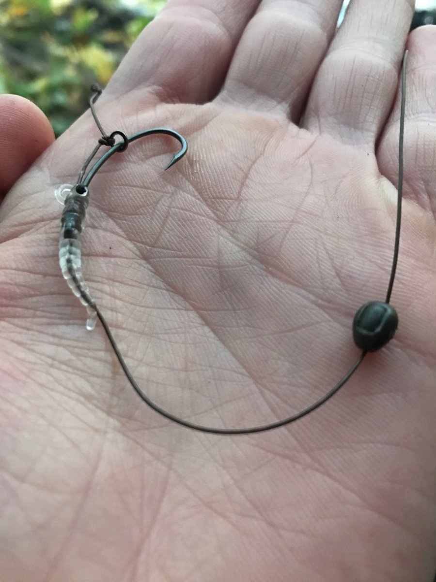 Jako nástrahu na jeden prut jsem zvolil jednu kuličku 21mm příchutě Extasy s Pop up 14mm tentýž příchutě a obalil celé v obalovací pastě. Na druhý prut jsem nastražil samostatnou kuličku Scopex -Squid 21mm. Návazce jsem vyhotovil ze šňůrky Strip - x 25 lb s háčkem Long shank nailer ve vel.č.6. a menším bročkem Camo shotz od firmy Carp ´R´ Us. Musím se přiznat, že na háčky Long shank jsem chytal poprvé, nikdy mě nějak kvůli svému tvaru neoslovily, ale nakonec jsem se nechal zlákat a zkusil je a nyní za sebe mohu říct, že suprově drží v kaprově tlamce a určitě je zařadím do své krabičky s bižuterií.