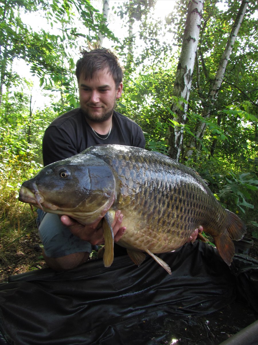 Během následujících dní se však nic nedělo, kromě několika kapřích dorostenců jsme nechytli téměř nic. Rozhodl jsem se tedy, vzít jeden prut a kapry „vystopovat“, což se mi nakonec povedlo. Nedaleko rákosového pole se vyhřívalo několik ryb. Prut jsem tedy potichu nahodil do těchto míst. Zanedlouho přišel mohutný „hrkáč“, konečně! Bojovnost této ryby byla úctyhodná. Po několika minutách se můj protivník poprvé vynořil, byl to jeden z místních starých šupináčů. Následující den se podařil udělat záběr i Martinovi, a to na prut pod hranou. Po relativně krátkém souboji se nám do podběráku podařilo dostat doopravdy krásnou rybu. Jednalo se o krásného tmavého šupináče s váhou nad 20 kg. Naše nadšení neznalo mezí, nemohli jsme se vynadívat nad stavbou tohoto překrásného tvora. Jednalo se o Martinův první úlovek nad tuto bájnou hranici, úlovek jsme tedy řádně oslavili a vyrazili šťastní a plní dojmů zpět domů.