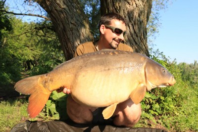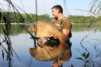 Pátý den na pískovně začalo proti mě slušně foukat, což mi nahrávalo do karet. V tento den jsem byl dohodnutý se skvělým kameramanem Radkem, že se za mnou staví, aby jsme natočili potřebný materiál na sestříhání videa pro Vás. Byla to velká náhoda, ale když Radek točil pruty, tak se to rozjelo. Neskutečný tank, který si to namířil do vázky ze starých vlasců. Pro kapra jsem musel zajet na lodi, jinak bych o nej přišel. Když jsem dojel nad rybu, bylo to úplně na tvrdo. Zkoušel jsem to do všech stran, ale už jsem tušil, že ryba vyhrála. Poslední bezmoc byla utáhnout brzdu a zkusit za to zarvat, jestli to nepovolí. V tu chvíli to povolilo cca o jeden metr a já v polarizačních brýlích viděl to mohutné tělo kapra, jak je zamotaný cca metr pod vodou ve starých vlascích. Vzal jsem podběrák a hrábnul pro kapra pod vodu, který byl naštěstí úplně v klidu, jako kdyby na mě čekal. Měl jsem nepopsatelnou radost, protože se mi podařilo podebrat s velkým štěstím rybu s dvojkou na začátku za přítomnosti člověka, který to s fotákem a kamerou umí.