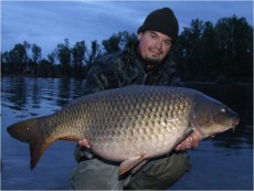 Až poslední noc se zase zatáhlo, začlo mrholit a mně přišla brutální jízda od padlého stromu. Kolem druhé hodiny ranní jsme se těšili společně s Petrem z úlovku nádherného lysce o váze 21.5kg. Ochutnal dvě seřízlé 24mm kuličky 3XL s půlkou bílé pop-up o Vision Baits, "zasypáno" dvěma hrstma tygřích ořechů. Ostatní ryby přišly na C4 a taky na samotné dva tygřáčky. Petr chytal na své vlastní boilies Tutti Frutti v kombinaci s oranžovou pop-up 3XL. Abych byl upřímný, tak jsme s krmením po dvou nocích bez záběru začali šetřit, protože nám bylo líto krmit nenažrané jelce kvalitním boiliesem:-)