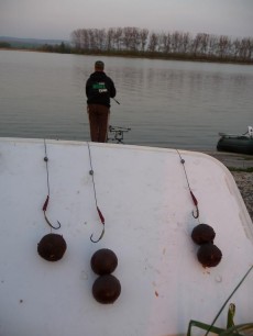 Veru aj po rozkŕmení a uplynutí nieklko hodín bolo vidieť, že aktivita rýb je na nule a naše skóre vyjadrovalo úplne rovnakú hodnotu. Po asi ôsmych hodinách nič nerobenia som už bol dosť nervózni(tí čo so mnou jazdia na ryby vedia o čom hovorím), nasadol som do člna a išiel sa povoziť po rybníku. Ani tam som však neobjavil nič prevratné a tak som iba stiahol jeden prút z nakŕmenej oblati a zaviezol ho do asi 450m vzdialenej zátoky, kde bola asi o meter plytšie.