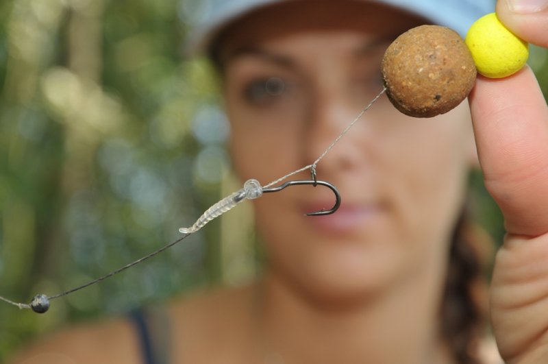 Po několika planých pokusech jsem uvázal sestavu ze svlékací šňůrky Super Mantis, háčku Cranked Hook vel 6 ATS stylem Blowback rig doplněný o klasický Mouthsnagger. Na tomto forpasu jsem pak nástrahu složenou z 24mm Kill krill + 16 mm fluoro pop up spustil asi 4cm od obloučku háčku.