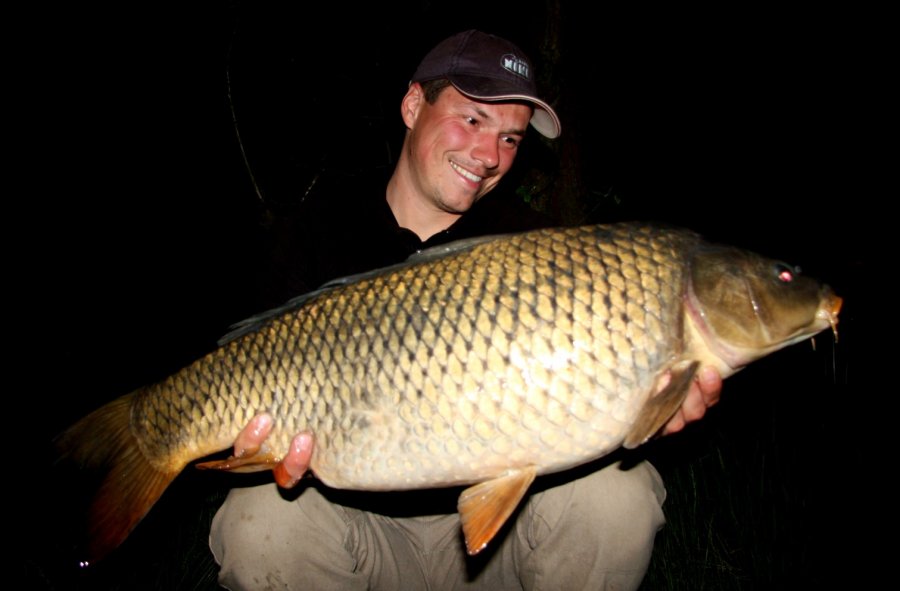 První záběr se dostavil již za hodinu a půl. Odměnou byl místní kapří dorostenec. Ihned po zavežení se mi rozjel druhy prut. Tentokrát to byl nádherný „řádkáč“, který vážil 10,6 kg. Ještě nikdy jsem tak velkého „řádkáče“ nechytil, takže jsem z něj měl obrovskou radost. Vždy po zavezení jsem kolem montáží rozházel cca. 20 – 30 kuliček, tak aby na moje boillies narazil více než jeden kapr.
