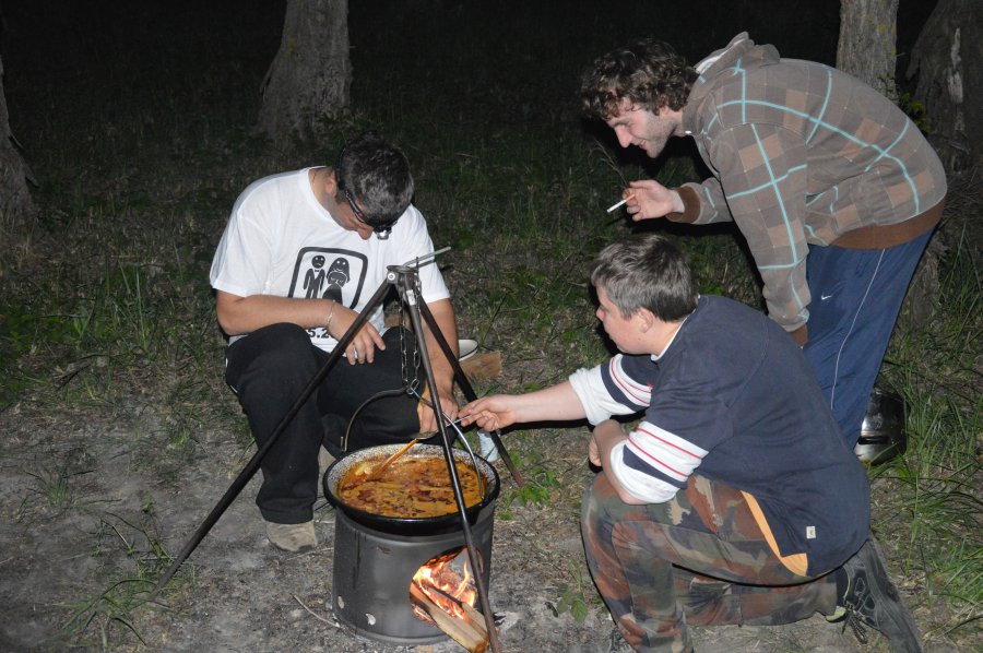 Doradu sme každého vítali. Prúty boli nahodené, alebo prioritou nebol rybolov.Drahocenný ćas plynie, slnko zachádza za obzor a aj guláš sa pomaly dovaril.