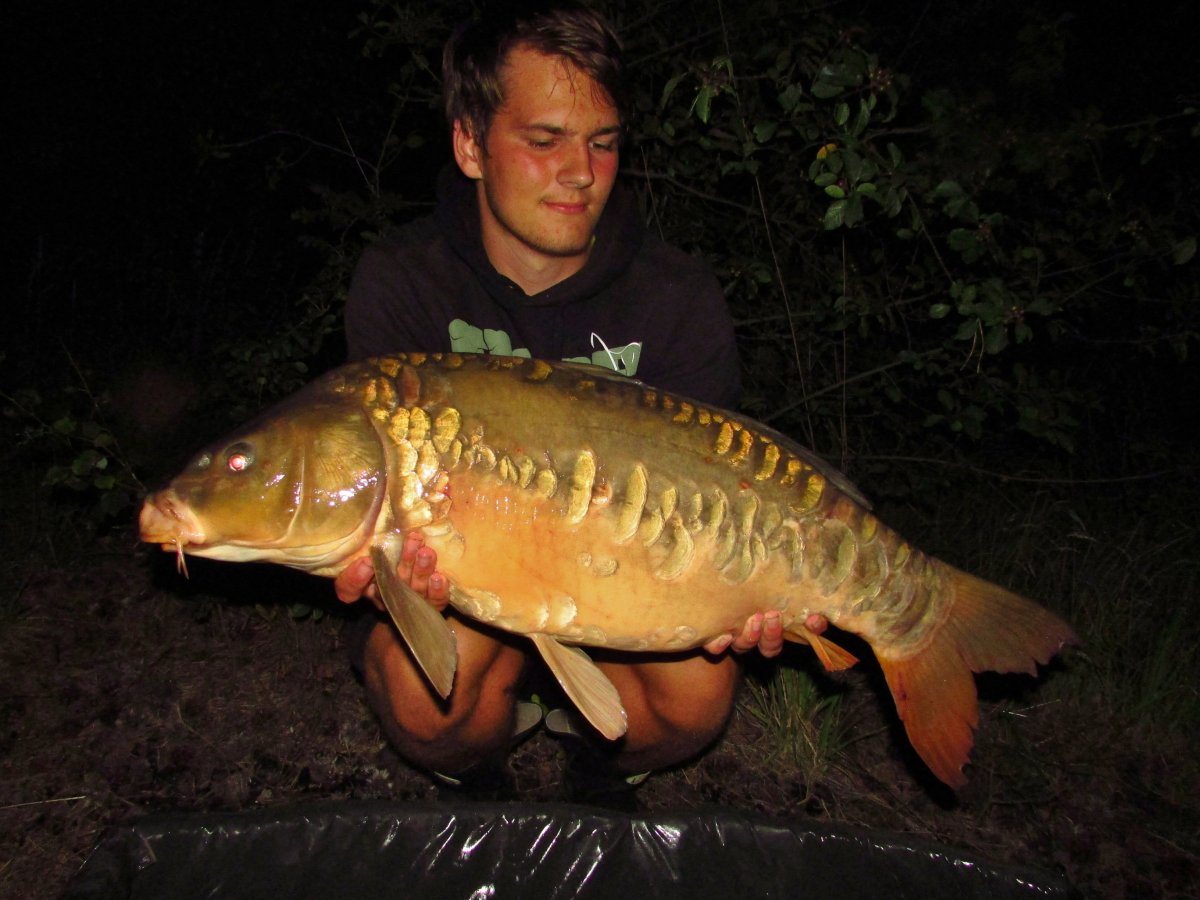 Na hladině se ukázal kapřík okolo 9 kilogramů. Poté je chvíli klid, když najednou uslyším jízdu. Hned po zvednutí prutu bylo jasné, že by se mohlo jednat o lepší rybu. Po krásném souboji nakonec v síťce podběráku skončil krásný tmavý lysec s váhou kolem 17 kg. Radost nezná mezí a rybu řádně oslavujeme. Mezitím Martin vytáhl ještě jednoho zhruba polovičního šupináče. Večer přichází další záběr a to na stejný prut. Ve světle čelovky jsem zahlédl úžasného kapra. Po chvílích plných nervozity mám v podběráku kapra, na kterého již dlouho čekám. Je to parádní řádkáč, kterému jsme navážili lehce přes 10kg. Opravdu úžasný start!